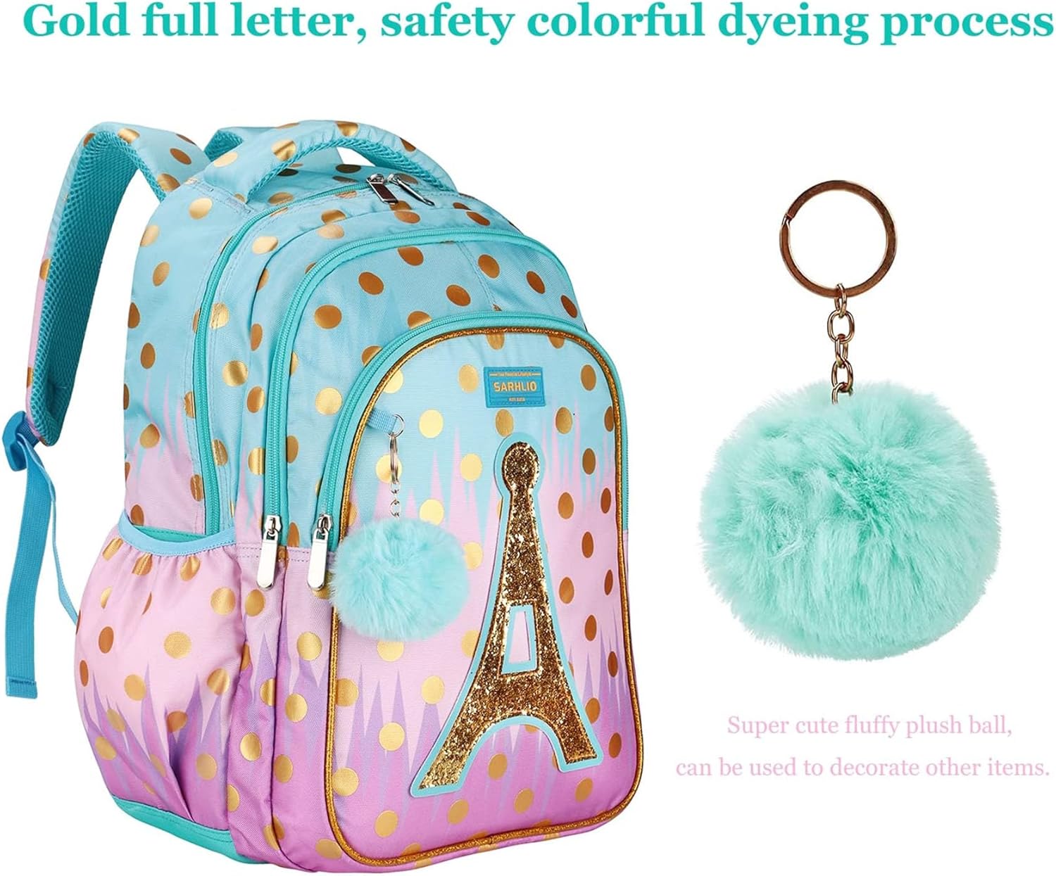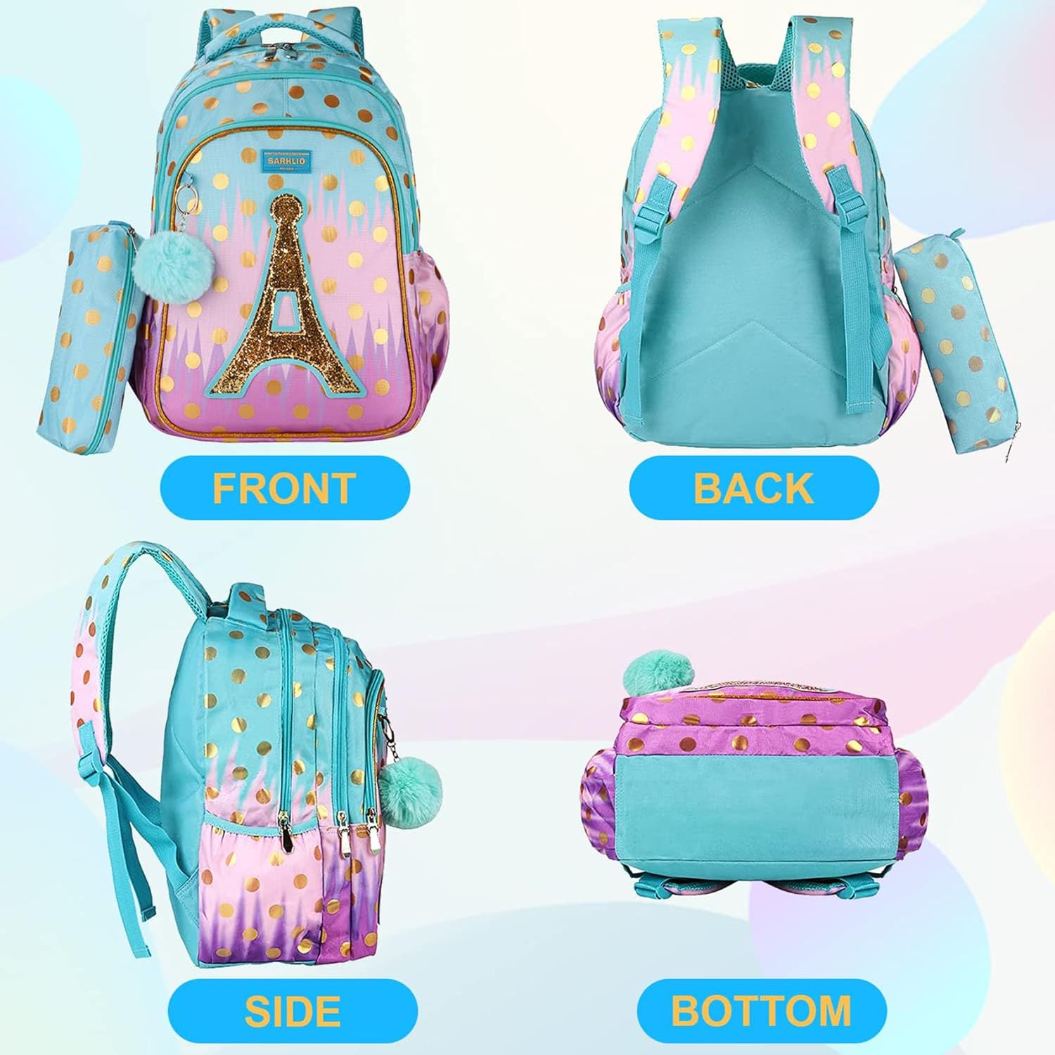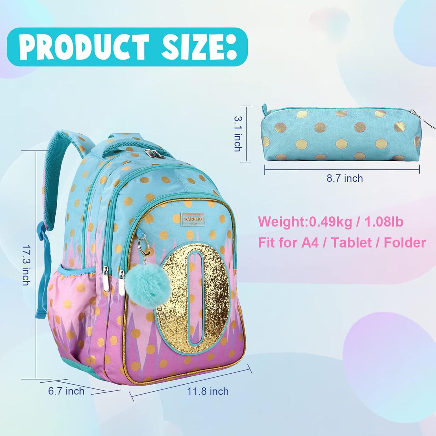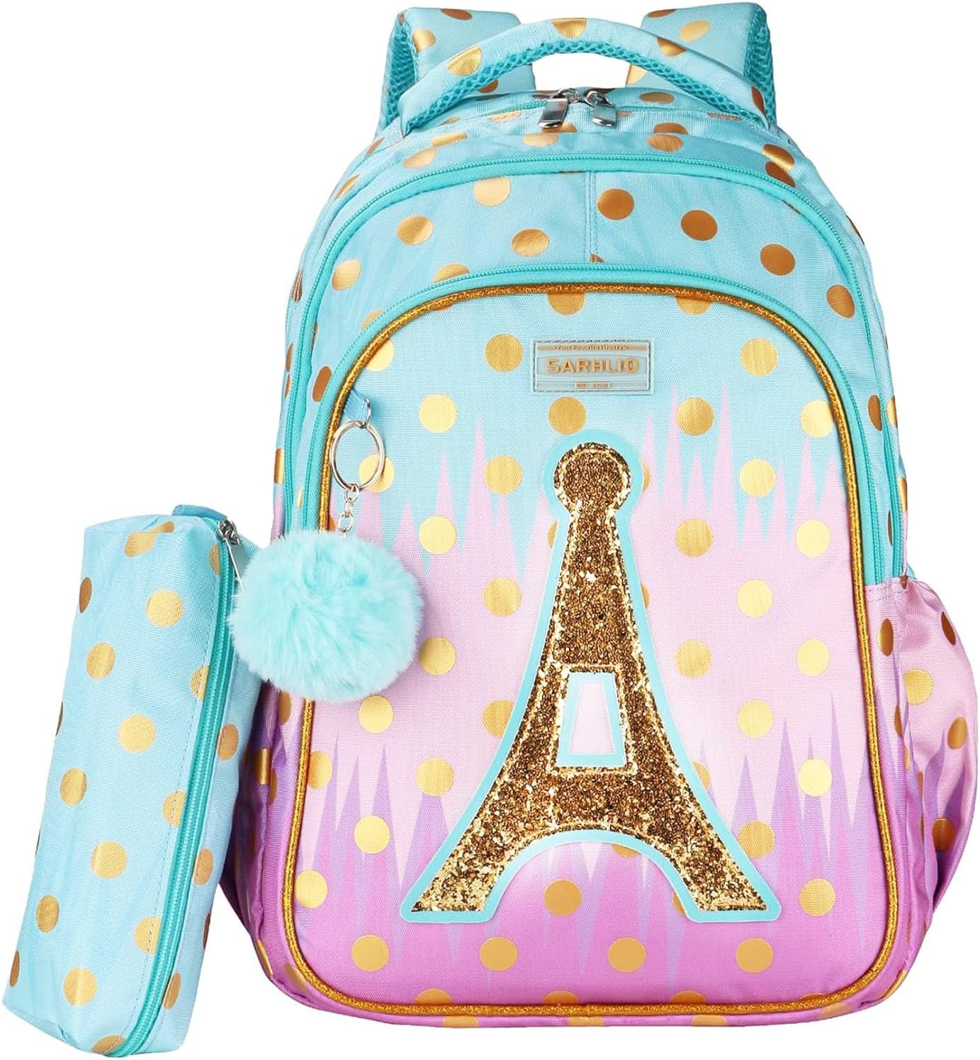 Backpack with Pencil Case, Glitter Galaxy Elementary School Girls School Bag Large 16 Inch Bookbag