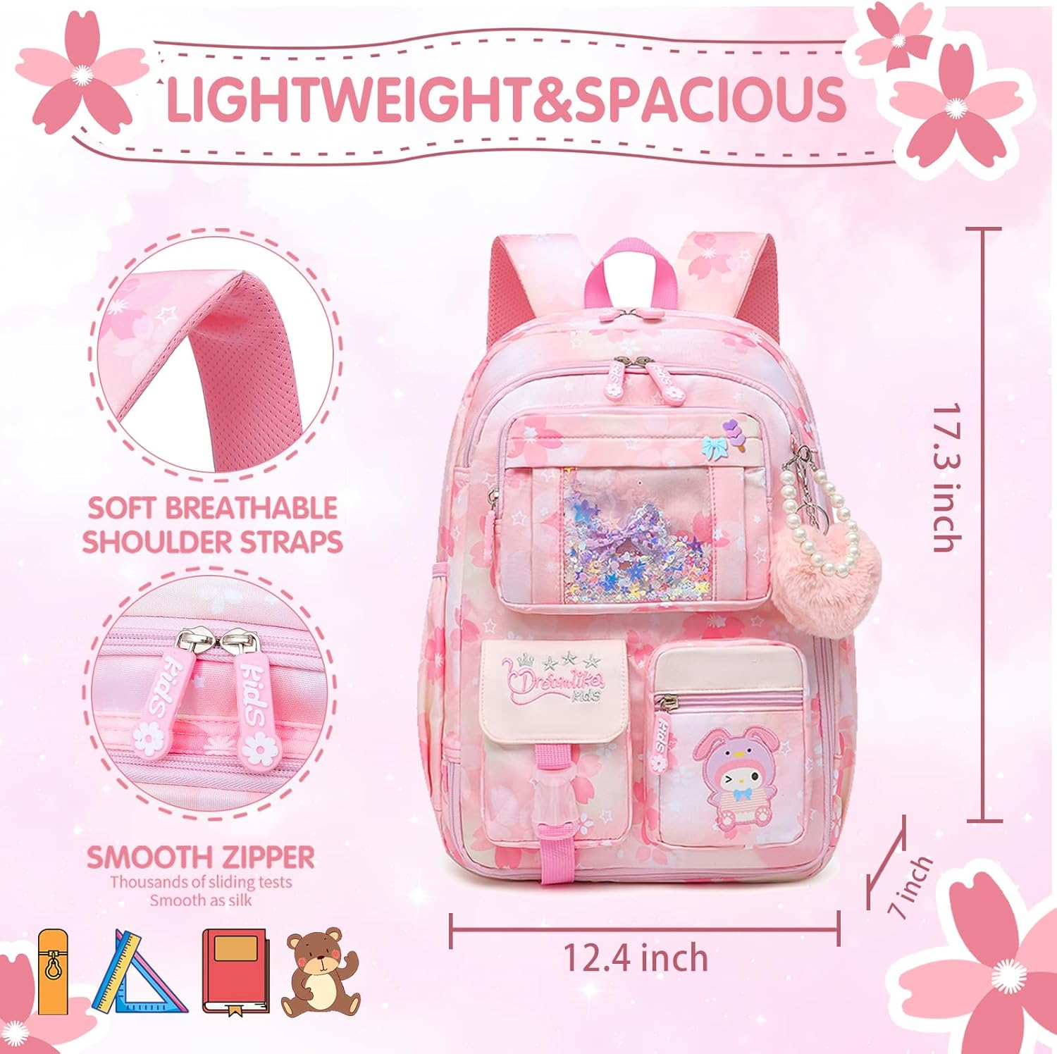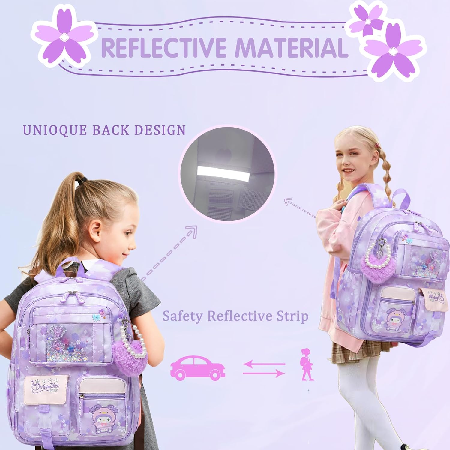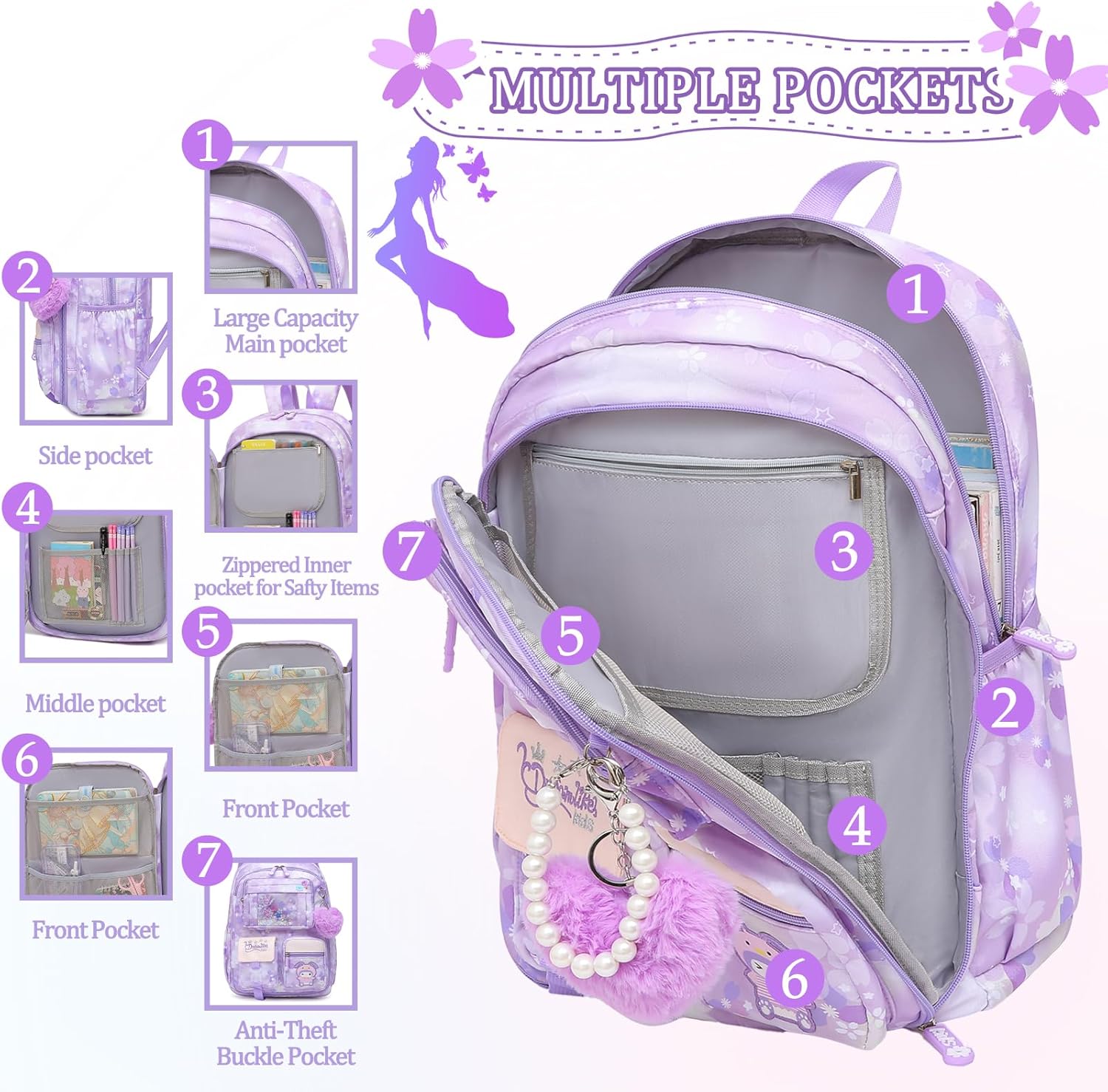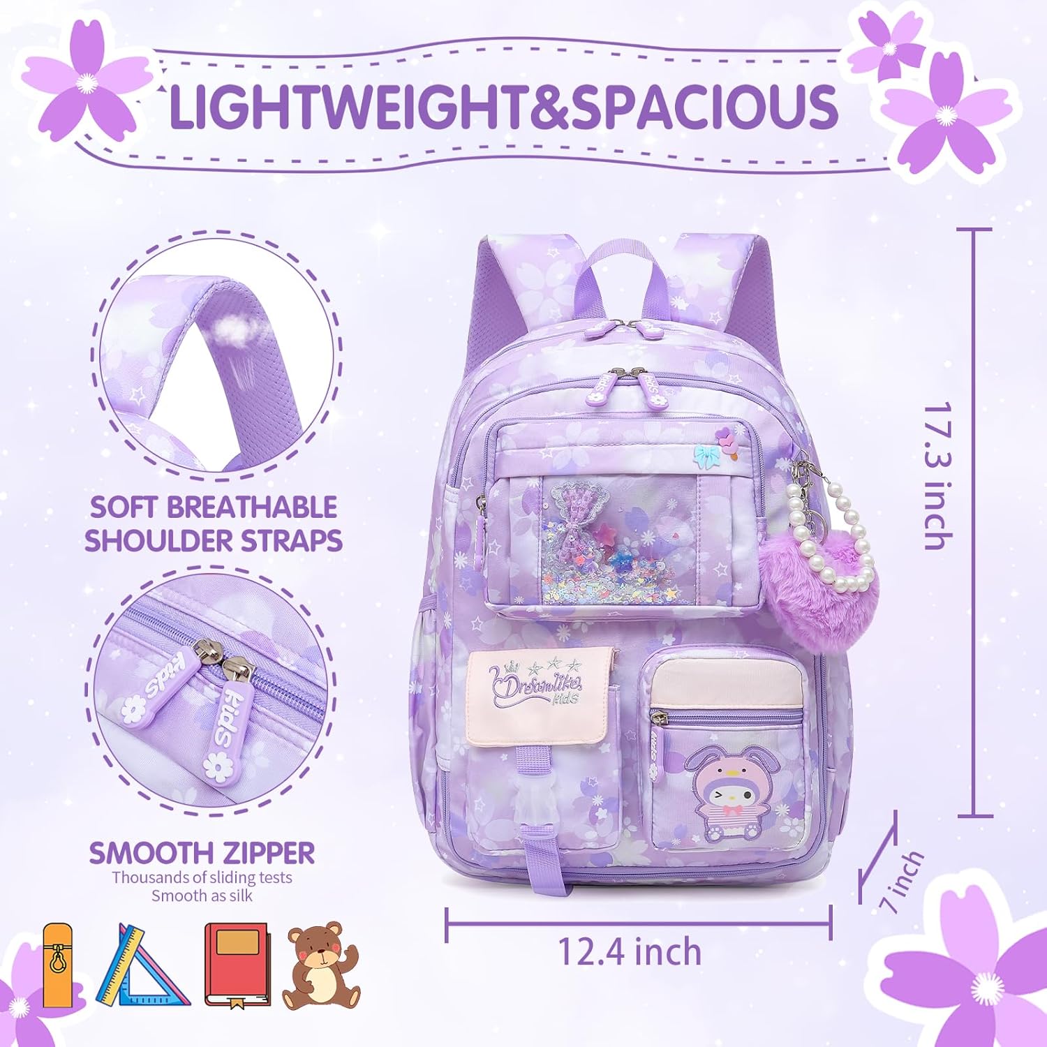 Lovely Girls Backpack School Bag for Students Kids Book Bag with Multiple Pockets Splash-proof Children's Backpack(17inch Purple)