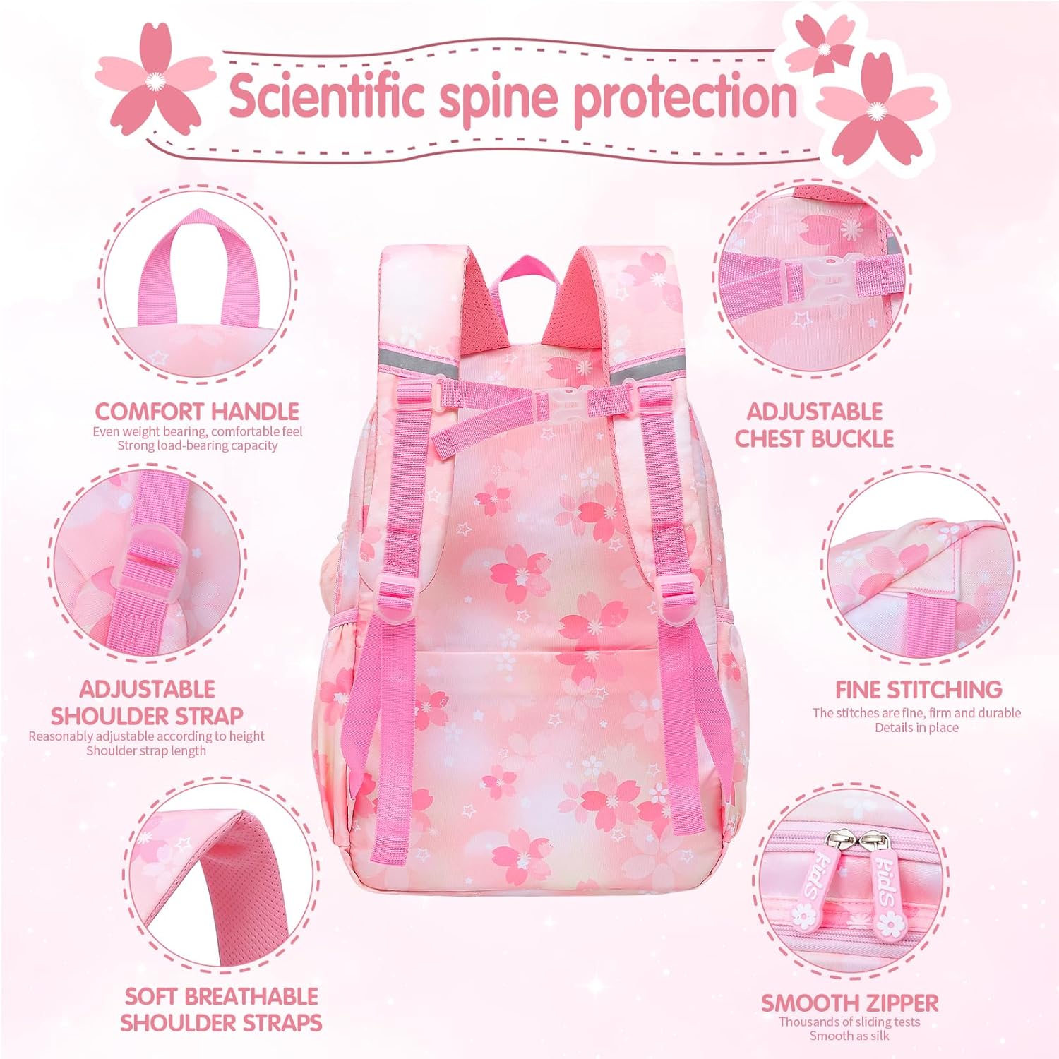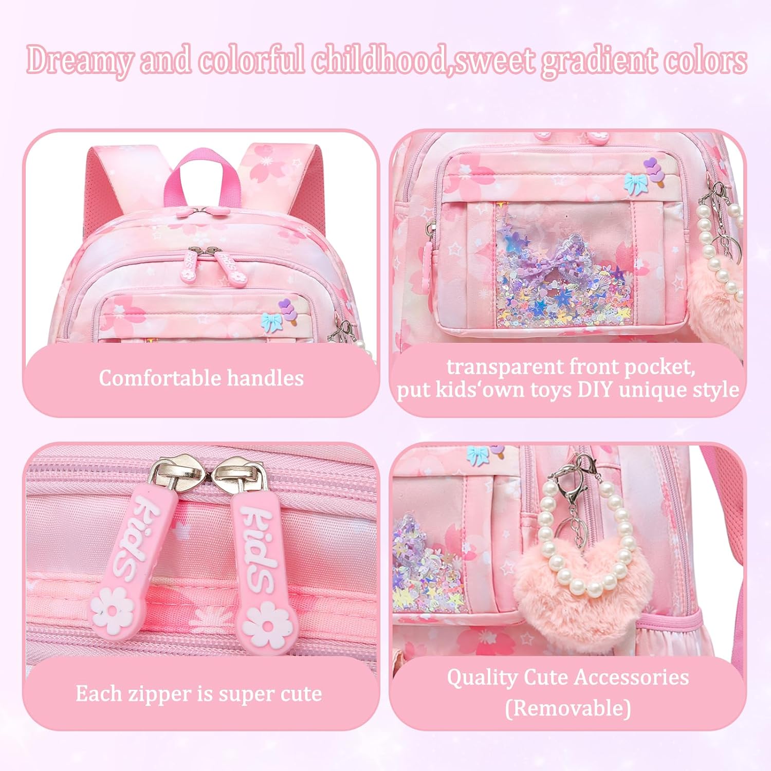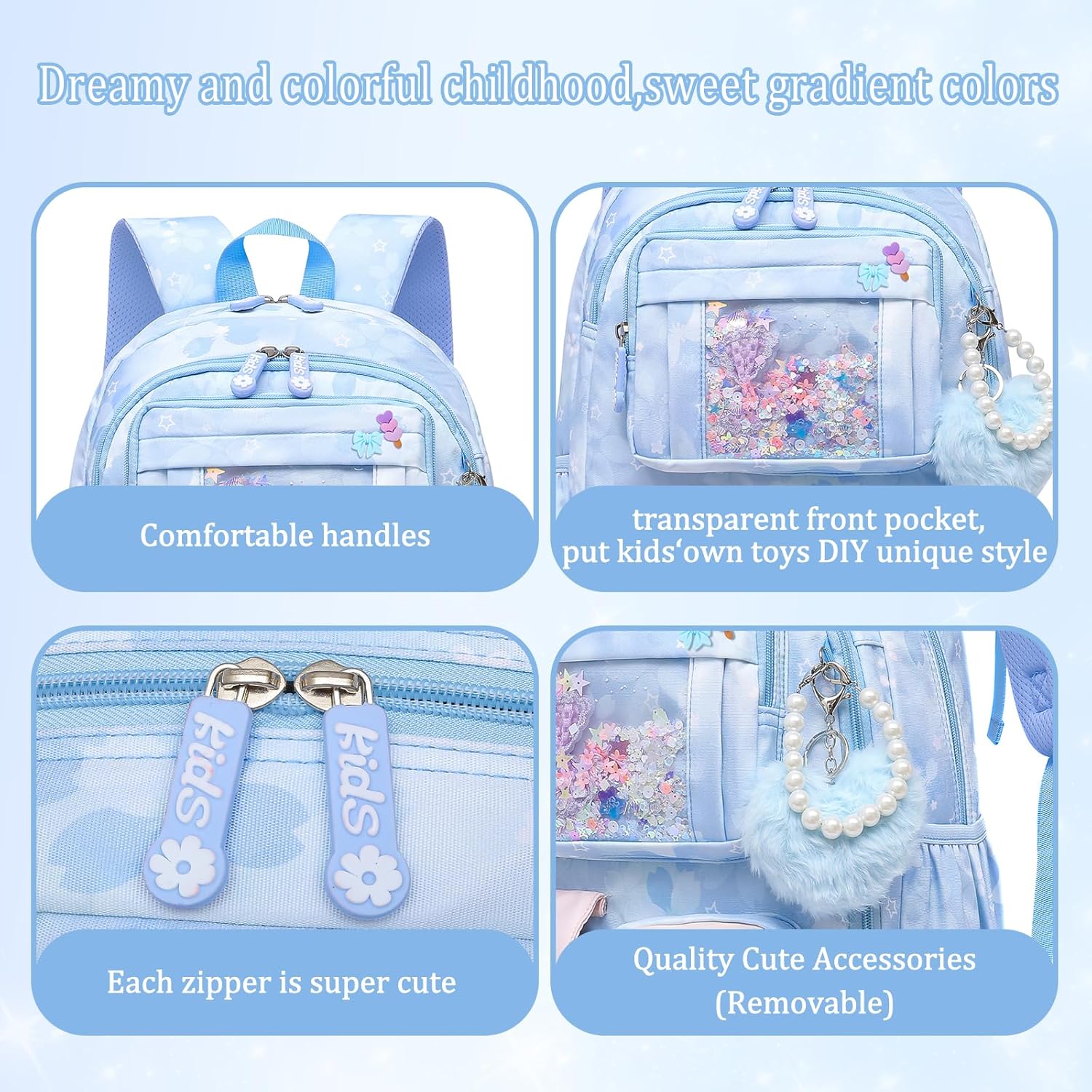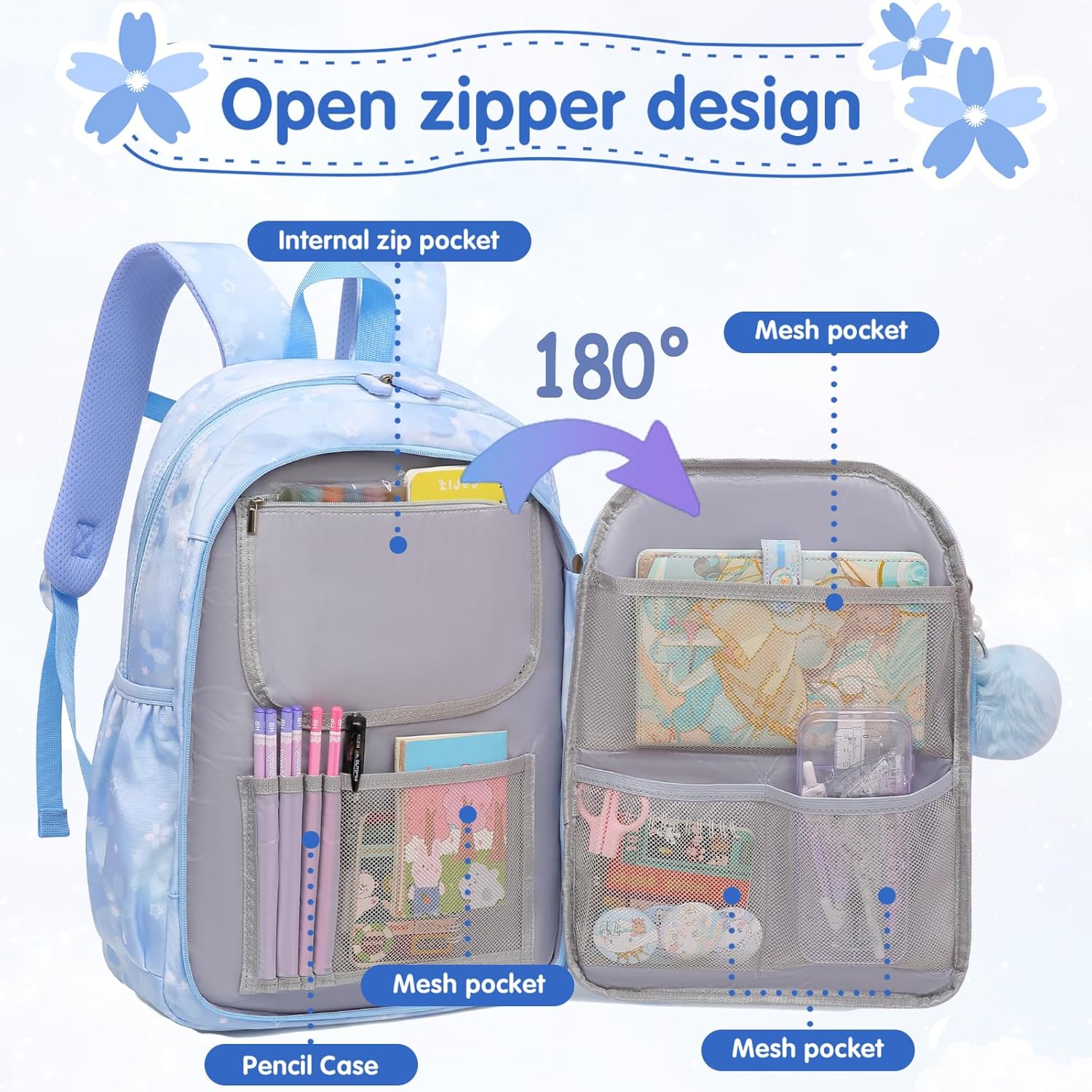 Lovely Girls Backpack School Bag for Students Kids Book Bag with Multiple Pockets Splash-proof Children's Backpack(17inch Purple)